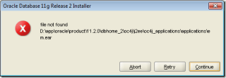 I installed Oracle 11g and the installation didn’t find WFMLRSVCApp.ear file. I extracted two files (win64_11gR2_database_1of2.zip and win64_11gR2_database_2of2.zip) in two different folder disk1 and disk2.