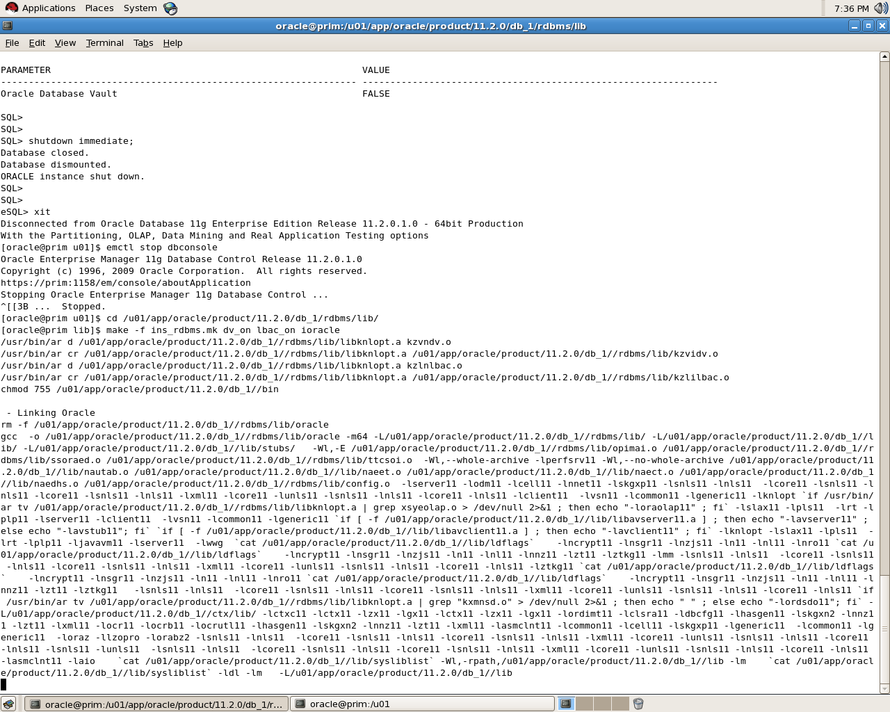 [oracle@prim u01]$ cd /u01/app/oracle/product/11.2.0/db_1/rdbms/lib/