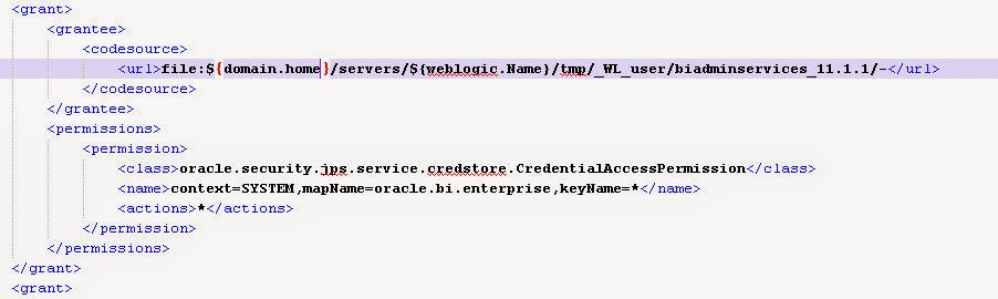 java.security.AccessControlException: access denied (oracle.security.jps.service.credstore.CredentialAccessPermission context=SYSTEM,mapName=oracle.bi.system,keyName=system.user read)