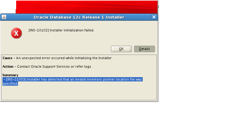 [INS-21003] Installer has detected that an invalid inventory pointer location file was specifies
