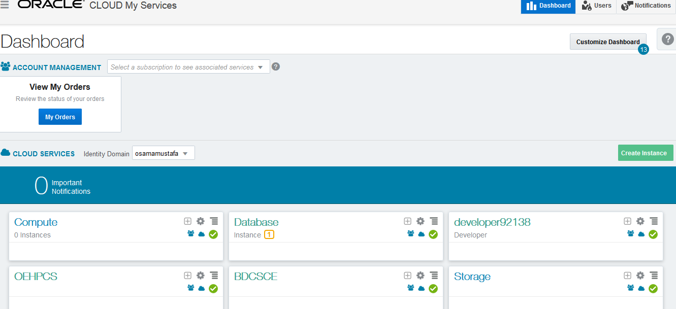 - Access to your account from https://cloud.oracle.com then Dbaas –> my services