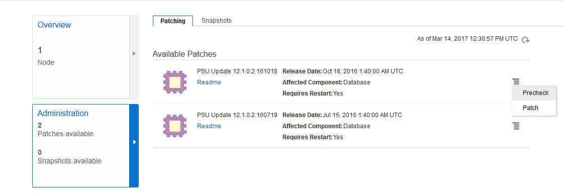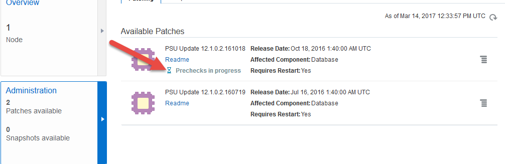 - If you want to use command line it’s possible as well, you have to connect to the cloud using Putty on windows check the post from here that will tell you how to connect using putty to the cloud, however if the below you will see that the available patch in the picture for my Dbaas, you can check the prerequisites again by press on it.