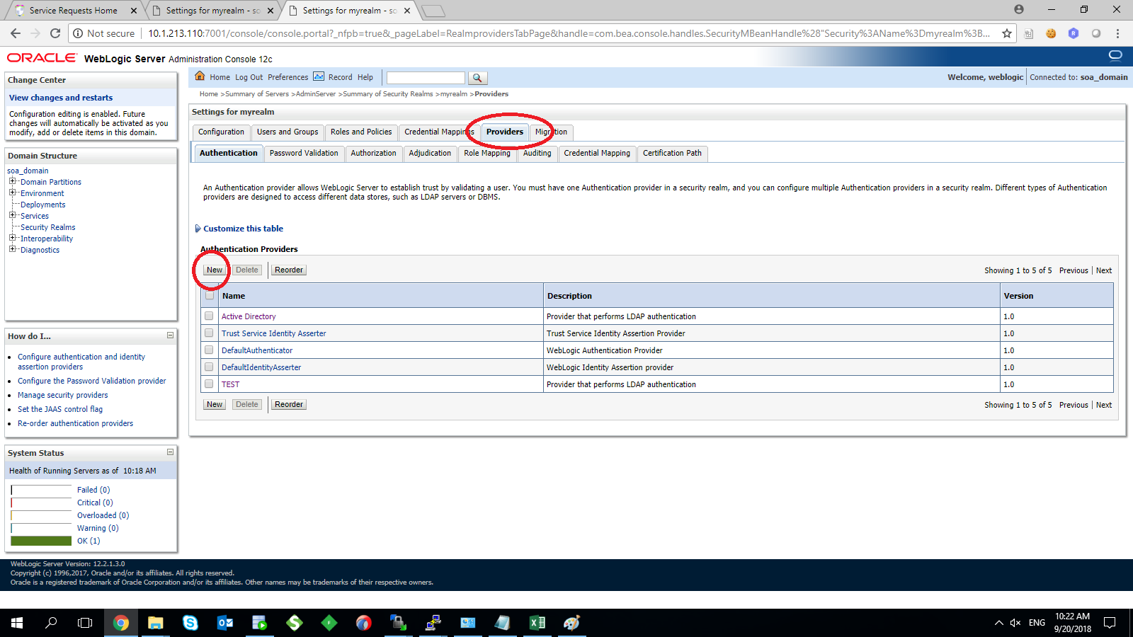 - Under Security Realms on the left panel choose providers > New providers