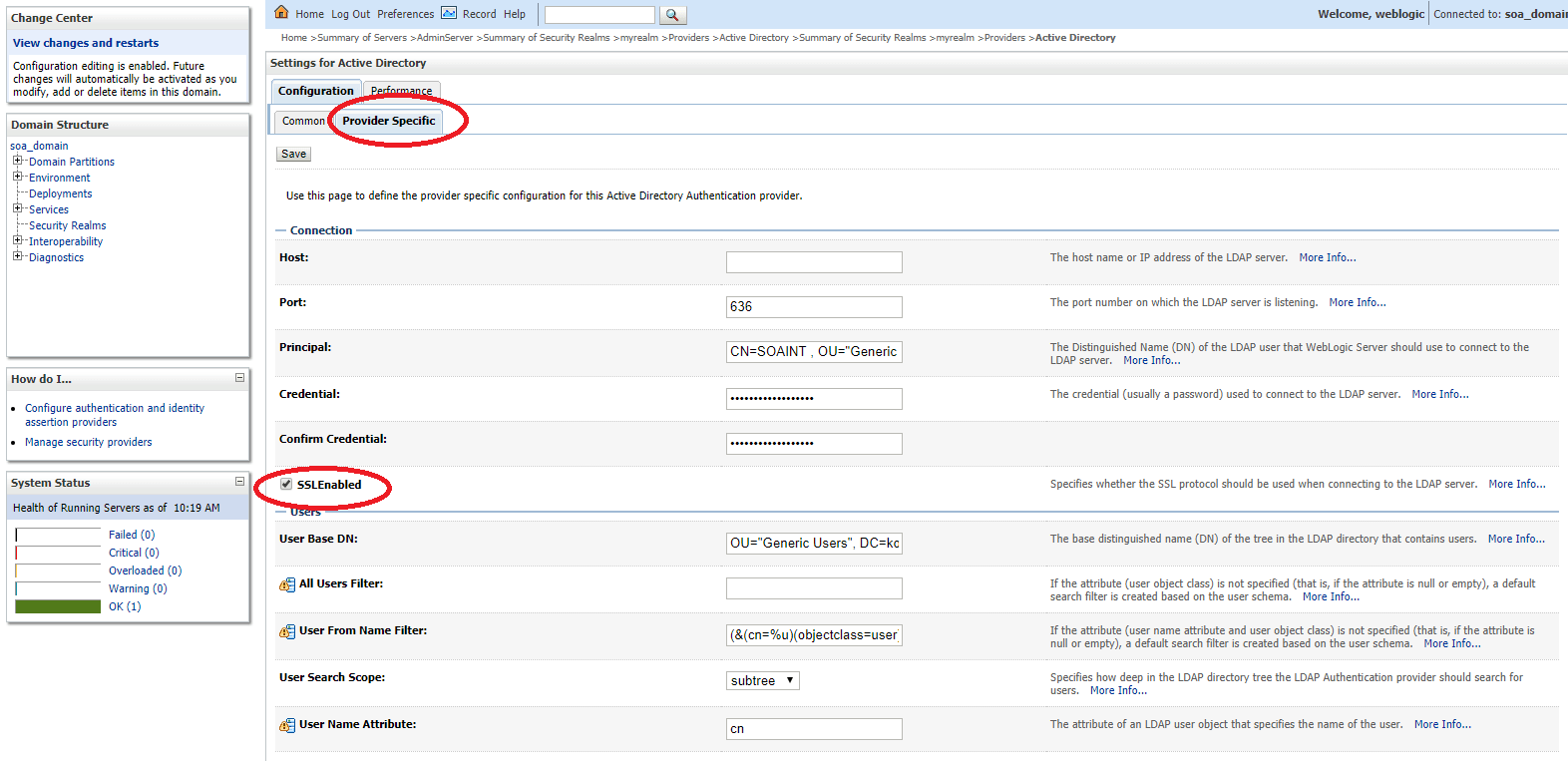 - Weblogic having different external provider > but we want Active Directory, make sure to choose the right one.