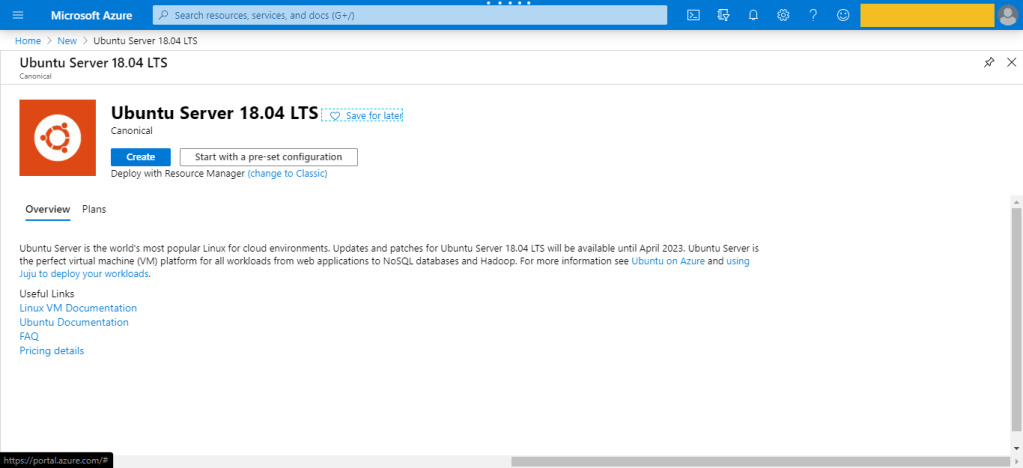 • Use the Search the Marketplace search bar to find “Ubuntu Server” for example.