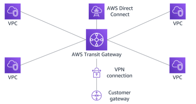 With a VPN connection or a Direct Connect gateway, routes are propagated from the transit gateway to your on-premises router using BGP.